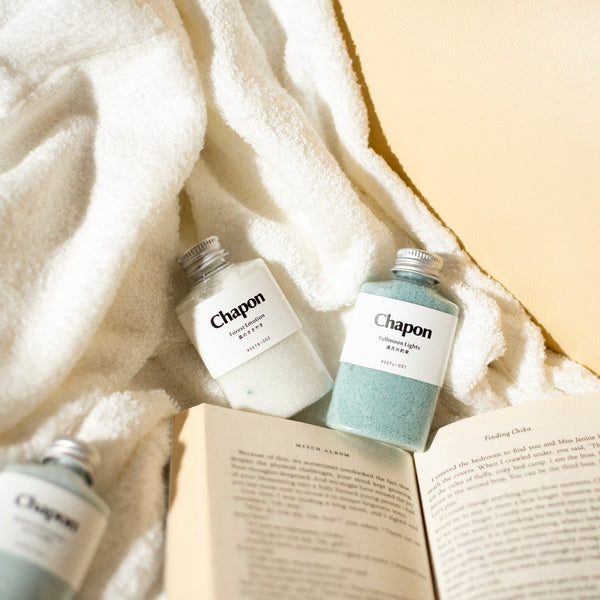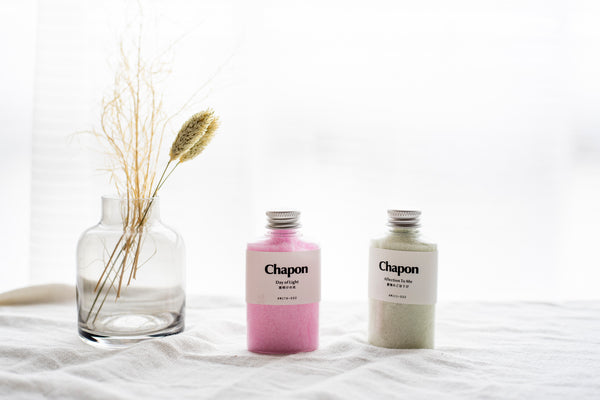 - 商品の特徴 : 「やさしく包み込む、夜の時間」というテーマで、香りの専門家がブレンドした100%天然アロマの入浴剤です。2種類の香り(「懐かしい日々」と「夜明けの光」)が含まれており、Chapon公式ストアだけの限定商品です。